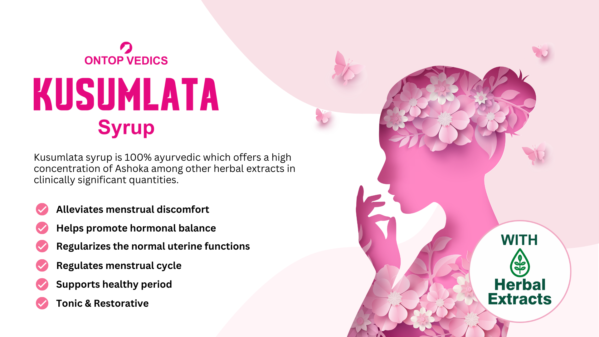Kusumlata syrup is an ayurvedic menstrual regulator that is used to support women’s reproductive health and balances the hormones level during the cycle.